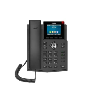 Model: Fanvil X3SG Pro IP Phone Ekran: 2.8 düymlük rəngli LCD ekran, 320×240 piksel çözünürlük Xəttlərin sayı: 4 SIP xətti Portlar: 2 Gigabit Ethernet portu (10/100/1000 Mbps) PoE Dəstəyi: PoE dəstəyi Səs kodekləri: G.722, G.711(A/μ), G.729AB, G.726, iLBC, Opus Funksiyalar: Səsli poçt, avtomatik cavab, BLF, konfrans zəngi Enerji təchizatı: PoE və ya adapter vasitəsilə (adapter ayrıca alınır) Ölçülər: 190 x 189 x 161 mm İş temperaturu: -10°C ilə +50°C arasında
